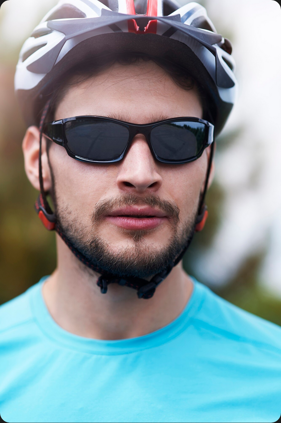 Lightweight sunglasses with polarized lenses for outdoor sports.